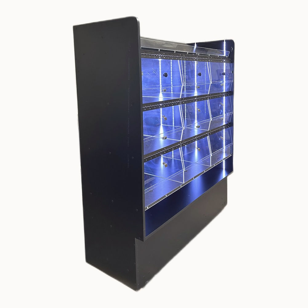 A long version of the RACK (BLACKOUT). Includes lights and each cabinet divided by acrylic divider.